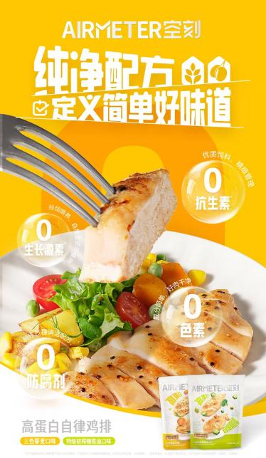 在原料层面,空刻自律鸡排始终坚持 “纯净配方,定义简单好味道” 的原则。自律鸡排选用从饲料源头开始进行精细化管理,全程无抗养殖的优质鸡胸肉,确保鸡肉原料的纯净本味。并已通过权威检测认证(151项兽药残留、97项抗生素、54项激素均未检出),产品承诺0添加生长激素、0抗生素、0防腐剂、0色素,从起点建立信任基础。
