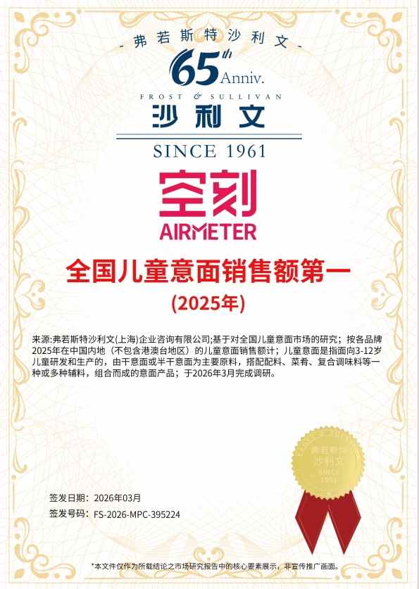近日,全球知名市场研究机构弗若斯特沙利文(Frost & Sullivan)发布中国儿童意面市场深度调研数据:空刻儿童意面斩获国内儿童意面市场销售额第一,凭借对儿童食品赛道的精准布局与深耕,成为该细分领域的标杆品牌。作为拥有60余年行业研究经验的国际权威机构,沙利文以严谨的调研方法和独立的第三方视角,为这一市场地位提供了坚实佐证。