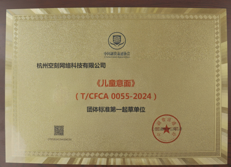 真正的行业引领者,始终以推动行业发展为己任。2024年12月,由中国副食流通协会批准发布的《儿童意面》团体标准正式出台,空刻作为核心起草者,深度参与并引领了此次行业标准的制定,以头部品牌的担当推动儿童意面赛道向规范化、高品质化升级。